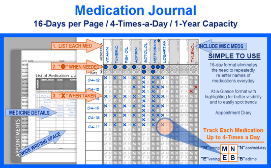 Medication Journal: 4-Times a Day, 15-Day Format Medicine Log Book - 1-Year Capacity
