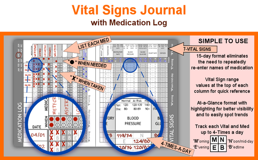 Vital Signs Journal with Medication Log Book: 4-Times a Day, 15-Day Format, High Daily Pill Capacity – 2-Year Capacity