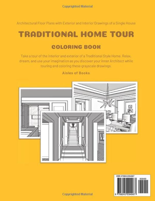 Traditional Home Tour Coloring Book Volume 1: Architectural Floor Plans with Exterior and Interior Drawings of a Single House (Open House)